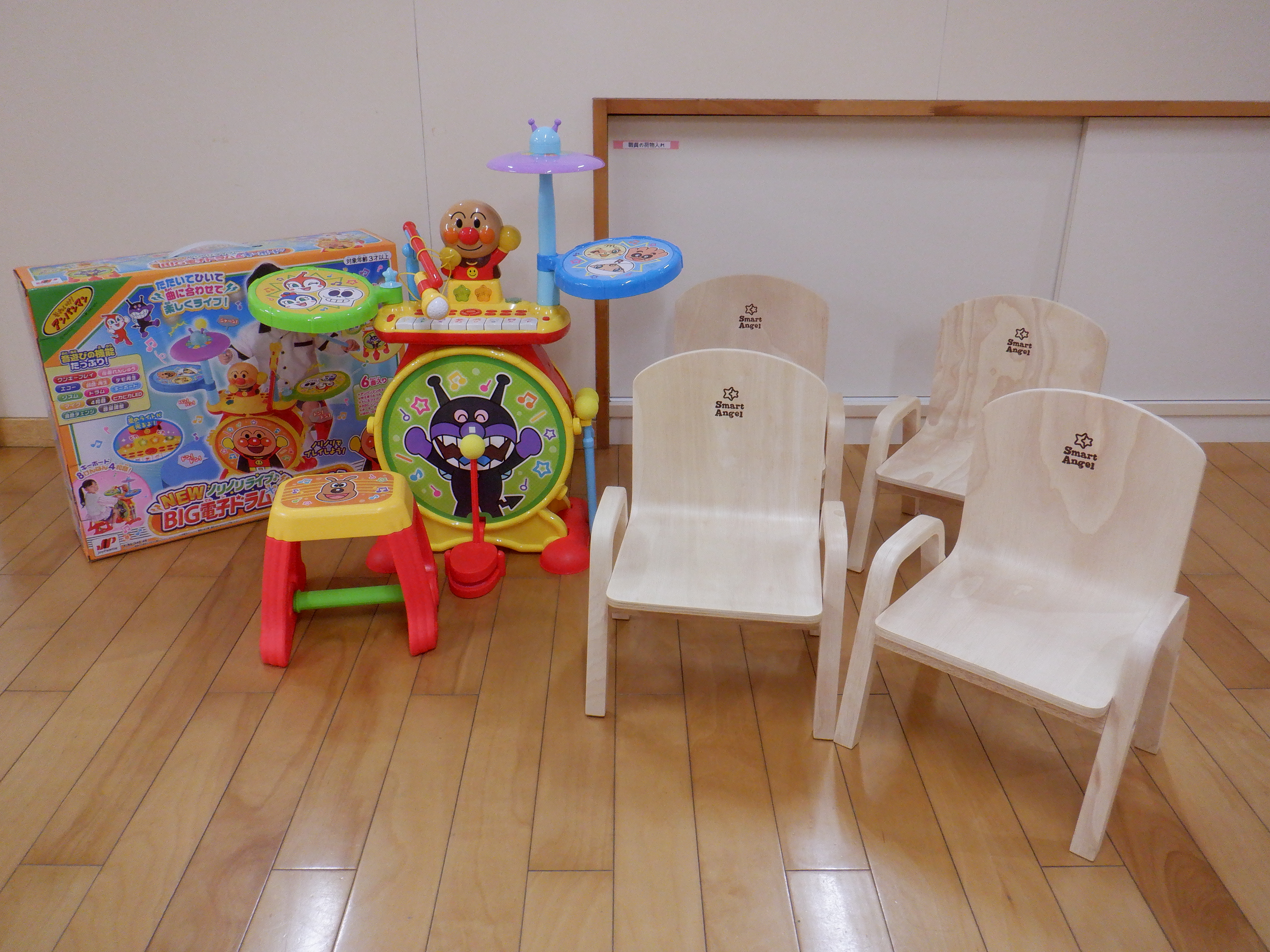 こどもたちの椅子に、アンパンマンのドラムセット!